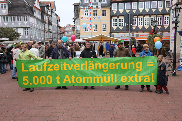 Der Kreisverband von BÜNDNIS 90/DIE GRÜNEN informierte am Samstag den 2.10.2010 in der Wolfenbütteler Fußgängerzone über die Energiepolitik der Bundesregierung. Lutz Seifert vom Ortsverband Elm – Asse – Fallstein sagt dazu: „Die Energiepolitik der Bundesregierung bringt uns Mitbürger alle in die Zwangslage, dass wir häufig mangels vorhandener Alternativen weiterhin Strom aus Kernkraftwerken nutzen, Kohle abbauen lassen und weiter unsere Autos mit Erdöl fahren müssen. Wir werden oft gegen unseren Willen zu Klimasündern, wir werden zu Mitläufern bei der Zerstörung der weltweiten Lebensbedingungen gemacht und damit werden wir alle mitschuldig am absehbaren millionenfachen furchtbaren Sterben in den vom Klimawandel am stärksten betroffenen Regionen der Welt.“