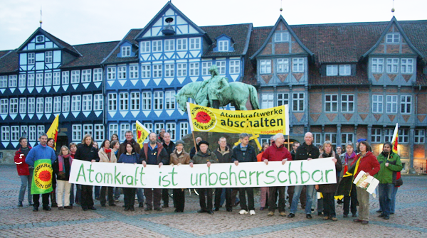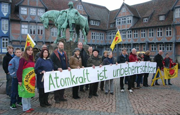 Mehr als fünfzig Menschen aus Stadt und Landkreis Wolfenbüttel waren spontan dem Aufruf gefolgt, sich wegen der katastrophalen Vorgänge in Japan am Sonntagabend vor dem Wolfenbütteler Rathaus zu versammeln und auszutauschen. In einer kurzen Ansprache fasste der Kreistagsabgeordnete Bertold Brücher zusammen, was die Menschen bewegt. Betroffenheit über die in die Tausende gehenden Opfer der Erdbeben und des Tsunamis, Fassungslosigkeit aber über die Menschenopfer, die mehrere GAUs (GAU = größter anzunehmender Unfall) fordern (werden) und schließlich Empörung darüber, dass in Erzeugung von Atomenergie einmal mehr, auch 25 Jahren nach Tschernobyl nicht die Meinung des Volks zählt, sondern Gewinn-Interessen mächtiger Stromproduzenten.