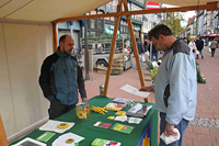 Info-Stand in der Wolfenbütteler Fußgängerzone